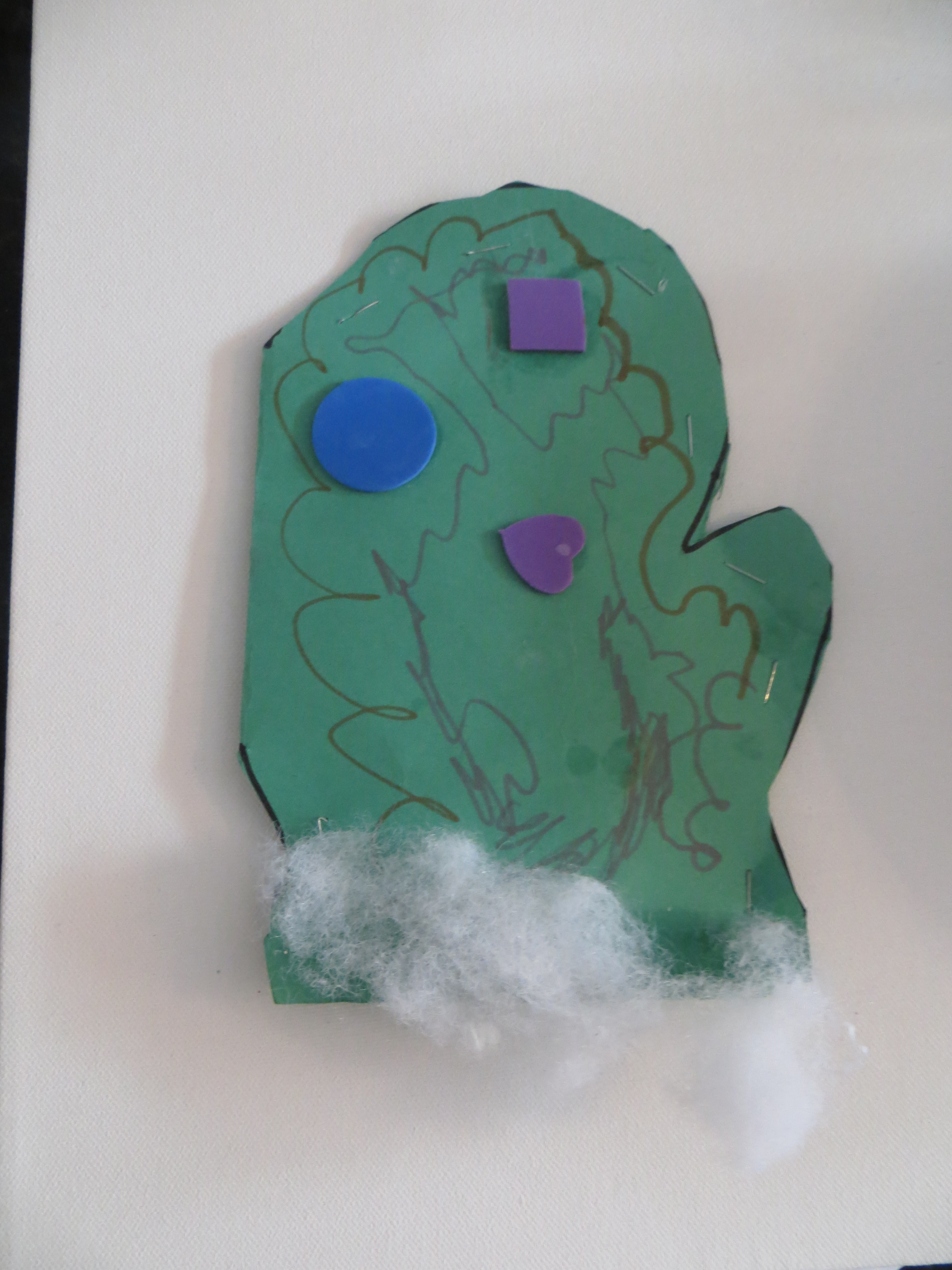 My five-year old grandson, Fischer, opened his backpack with great excitement and said, “Look, NeeNee, my teacher read The Mitten Story today and then I made this.” He showed me a mitten crafted from construction paper and stuffed with various animal cut-outs he had colored. “Do you want to hear the story?” And before I could answer, he was shaking the animal cut-outs onto the kitchen counter. With limited vocabulary, and the memory of a five year old, Fischer shared his unprompted version of the Ukrainian folktale.