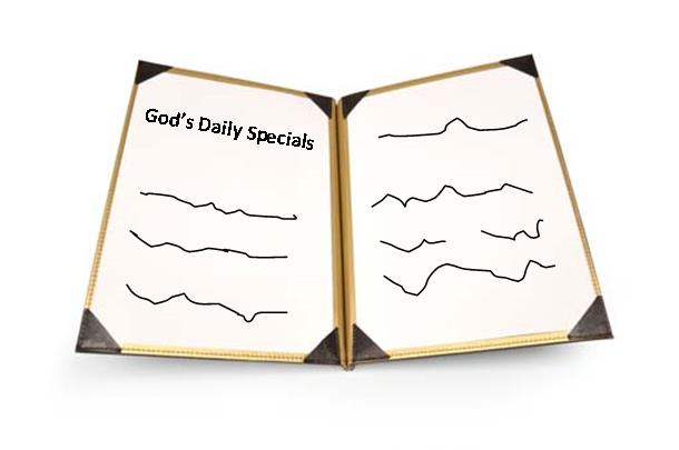 Jesus welcomes us in the same way; we are all on equal terms with Him. He feeds our spiritual hunger and offers daily menu selections to satisfy our every need. Take a peek at today’s menu.