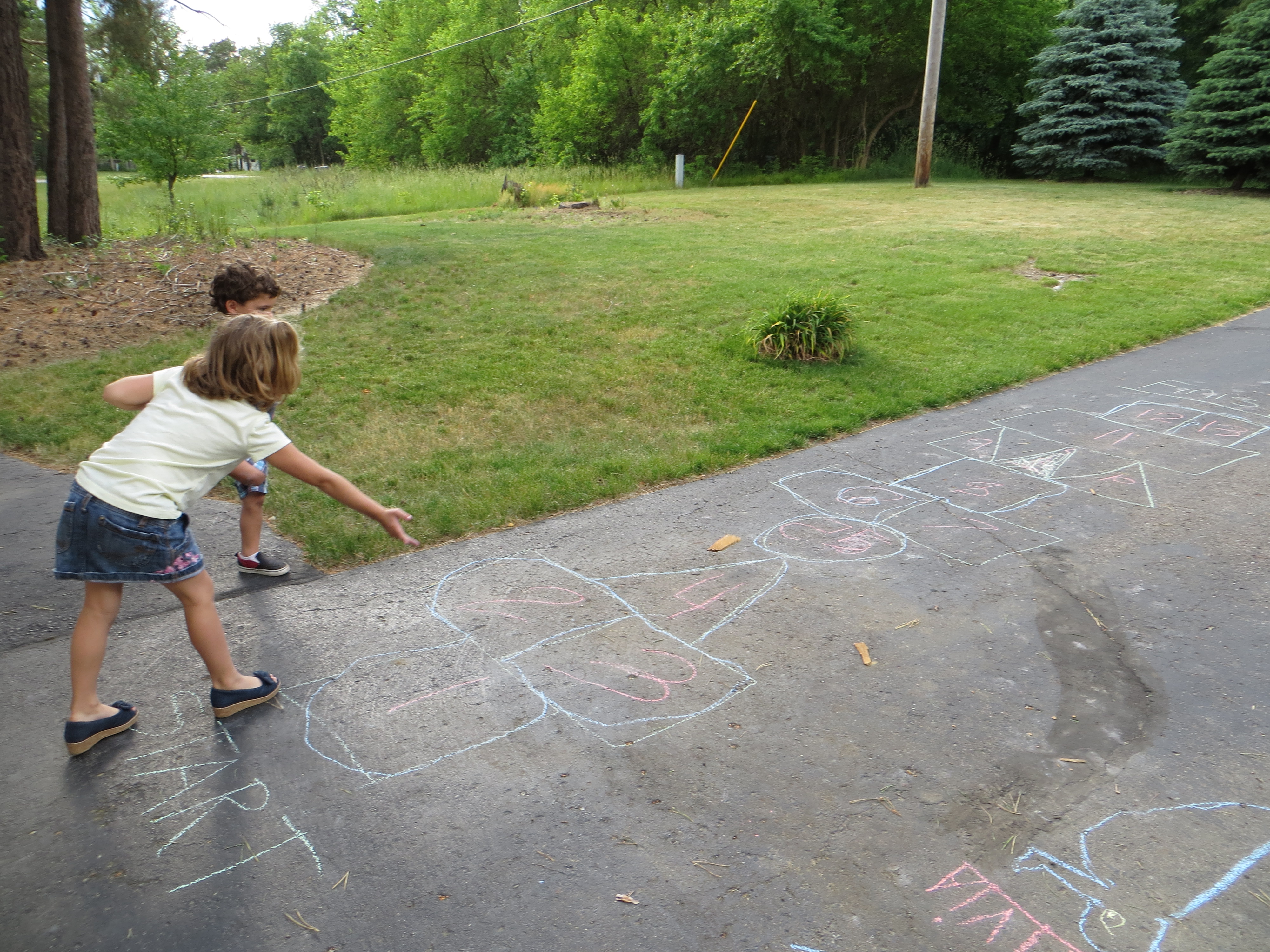 I watched from the porch as the grandkids opened a container of sidewalk chalk. They wrapped their little fingers around the jumbo chalk sticks and began to draw misshapen squares and triangles on the blacktop for a game of hopscotch. Several of the numbers inside the shapes were written backwards, but they never noticed; they only cared about hopping their way to the finish line.