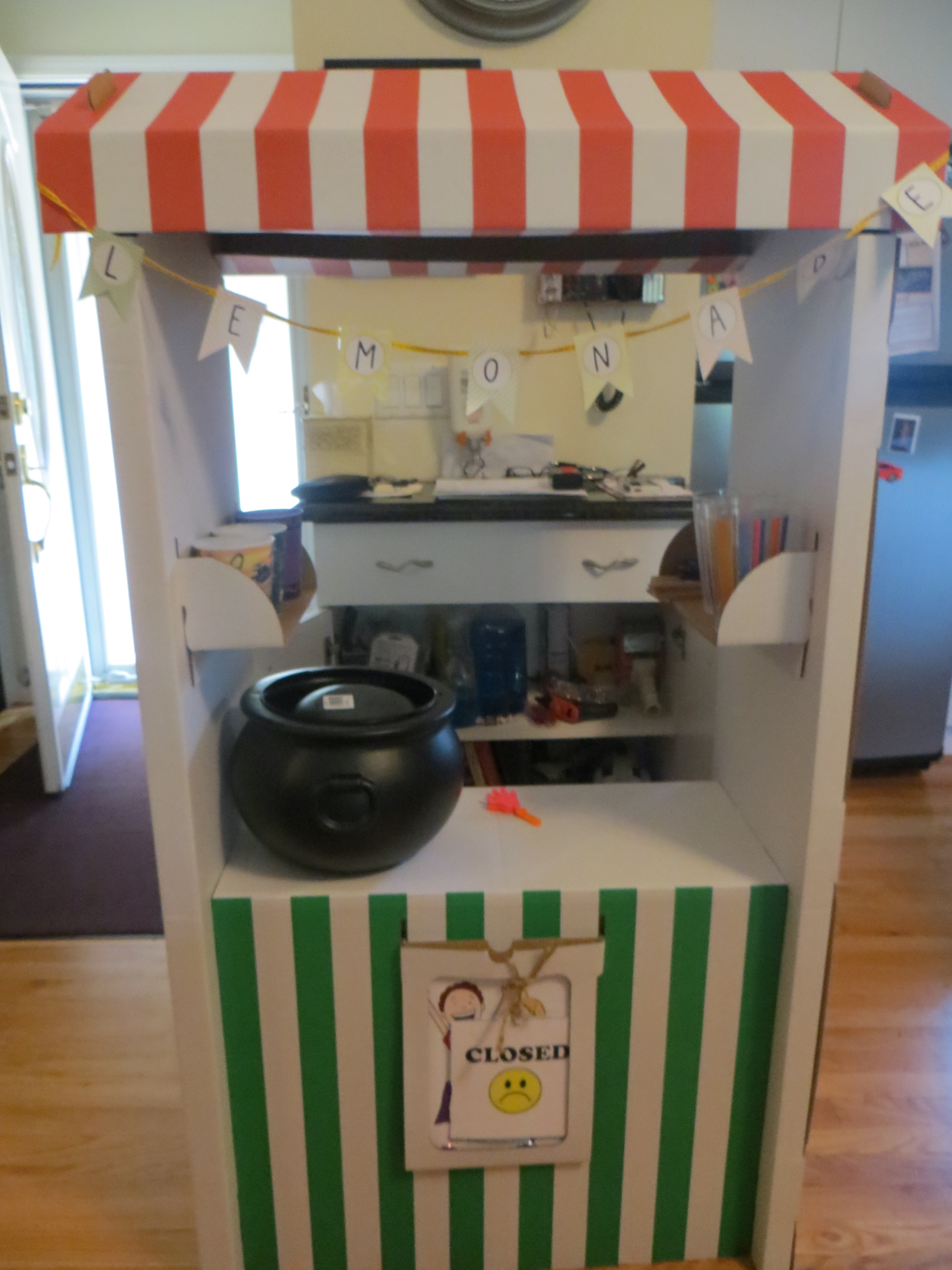 My daughter and son-in-law will be arriving shortly to spend a few hours with me and I’m not sure where there will sit. Let’s see, between the lemonade stand, art stand, forts that are inside, there are the Xploderz guns, bucket of pellets, new deck shades that need to be installed and flats of flowers that occupy the outdoor space. And we can’t use the front deck because it was just stained and still not dry.