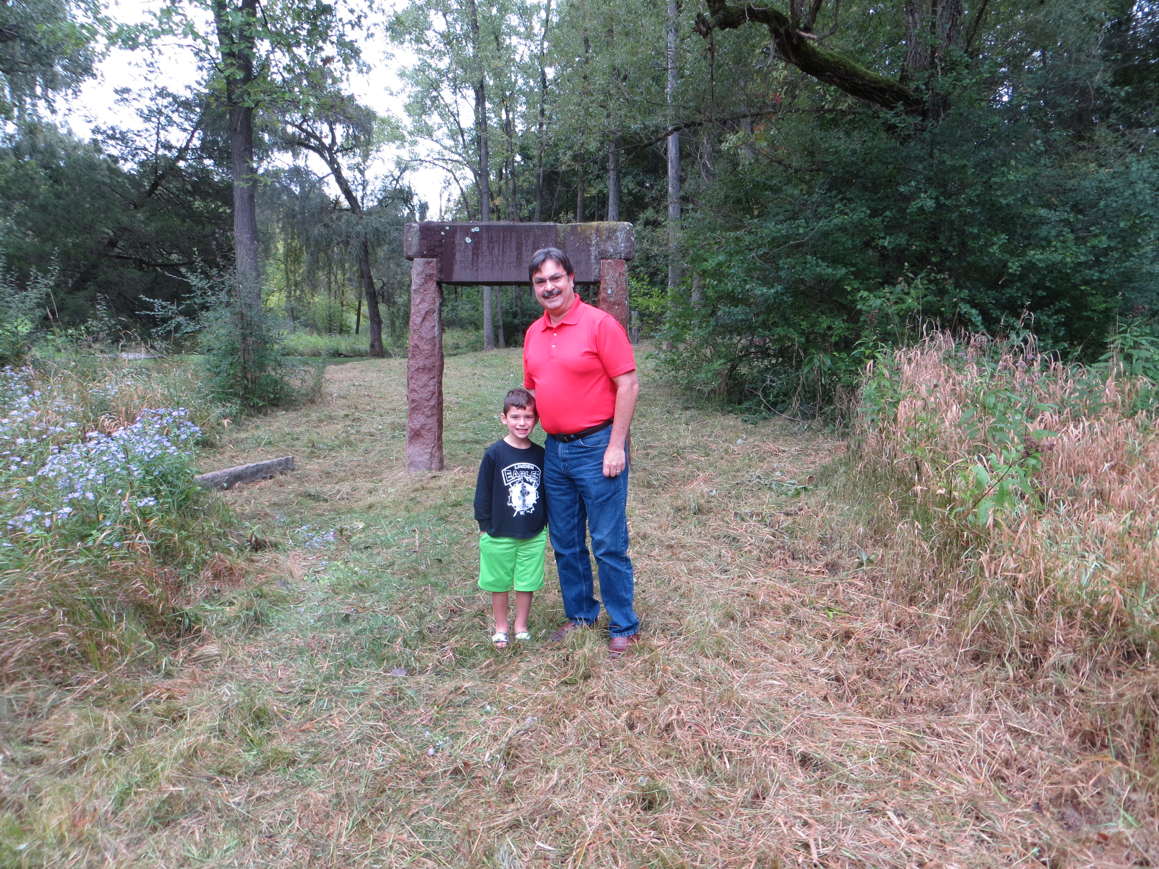 The main area of the wagon wheel shaped garden was mowed, but most of the quarry stones that encircled the property were hidden beneath overgrown weeds and gnarly branches. It lent a mysterious appeal to the wooded surroundings that further intrigued my eleven-year old grandson.