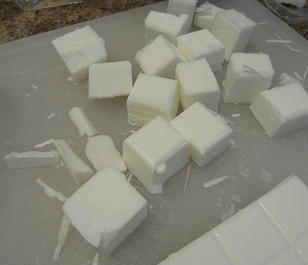 Before revising the formula, I decided to test the soap to see how it performed when heated. The soaps my company sells are a melt and pour type. The soap is cubed, melted in a microwave and poured into plastic molds. Once the soap sets up, it is popped out of the molds and ready for use.